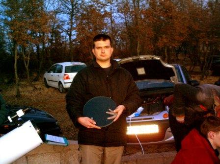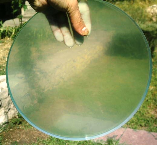 Ovo je dosad moj najveći pothvat, 300mm veliko tanko zrcalo. Do stakla sam došao preko akcije rezanja velike staklene table prozorskog stakla debljine 19mm. Rezanje je bilo u Korenici pri astronomskom društvu Korenica. Taj stakleni disk sam dobio na Messierovom maratonu 2006.