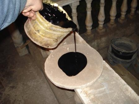 Pri kraju finog brušenja zadnjom frakcijom dovoljno je dodavati samo malo vode da se smjesa praha i vode ne osuši. Potrebna količina najfinijih prahova je toliko mala da se dodaje u količinama jedne četvrtine čajne žličice.